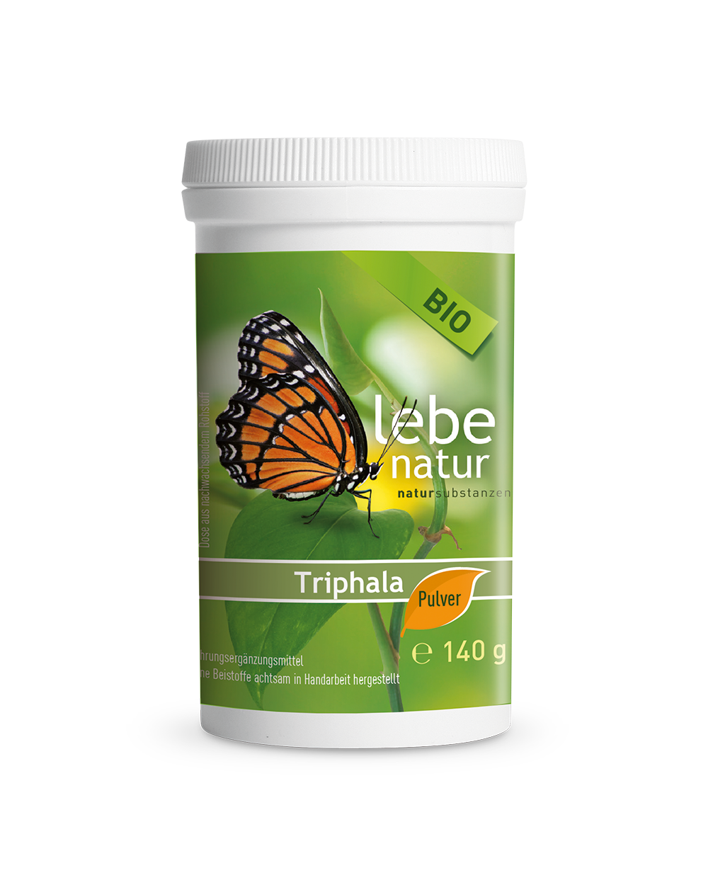 Die Drei-Früchte-Mischung Triphala ist eine klassische Ayurveda-Rezeptur, die es als Pulver oder als intensivere Triphala-Extrakt Kapseln gibt. Sie besteht aus den drei vermahlenen Früchten Amalaki, Bibhitaki und Haritaki. Man kann auch Pulver und Kapseln zusammen einnehmen, um den im Ayurveda geschätzten bitteren Geschmack zu erleben, der seine eigene Bedeutung hat. Bei größeren Einnahmemengen ist allerdings die Anwendung der Extrakt-Kapseln angenehmer.